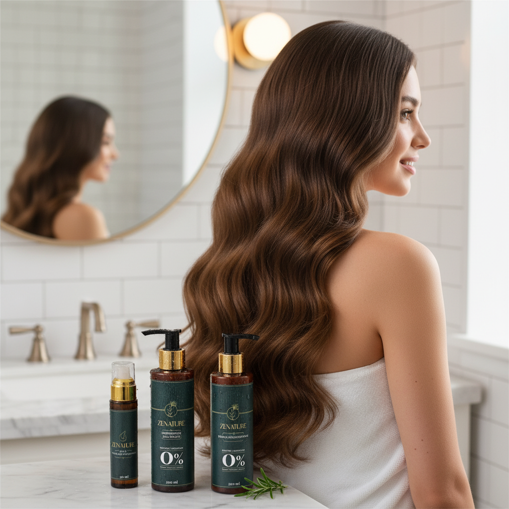 Suivez la routine complète Zenature : Shampooing + Après-shampooing + Sérum + Huile. Simple, rapide et efficace.
