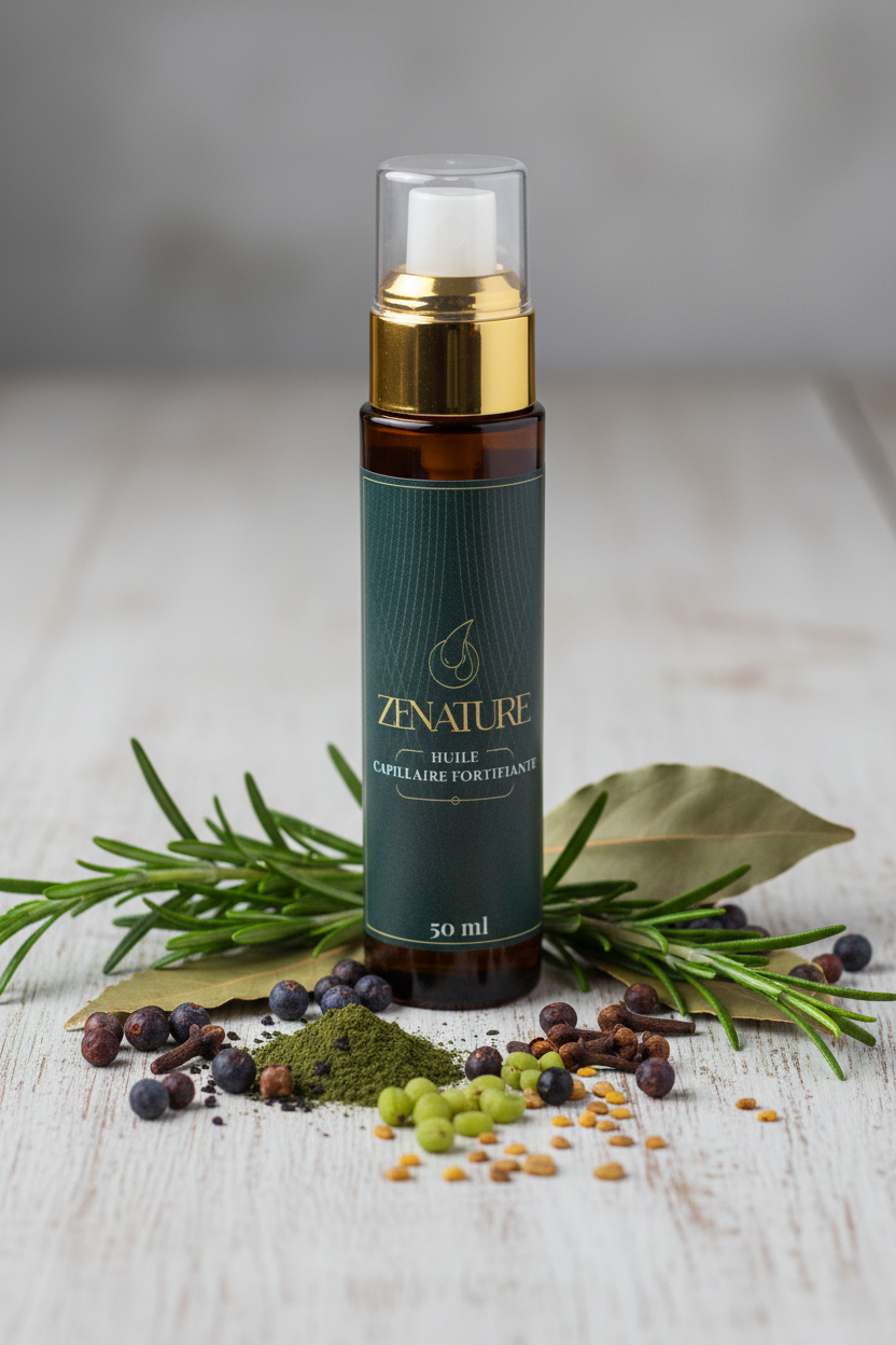 L’huile capillaire Zenature hydrate en profondeur et protège les cheveux secs et abîmés. Grâce à sa richesse en actifs naturels, elle nourrit la fibre capillaire, prévient la casse et redonne brillance et souplesse. Elle s’utilise en bain d’huile, en soin quotidien ou en massage du cuir chevelu pour stimuler la vitalité et la croissance. Parfaite pour cheveux secs, ternes ou cassants.